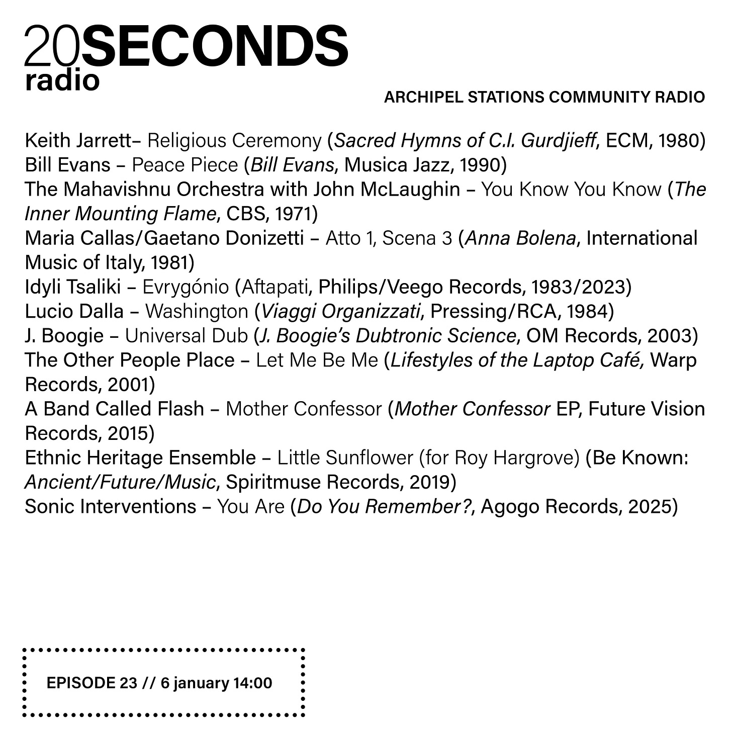 Episode 23 of 20 Seconds Radio aired earlier this week on Archipel Stations Community Radio, 88.4 Berlin/90.7 Potsdam.